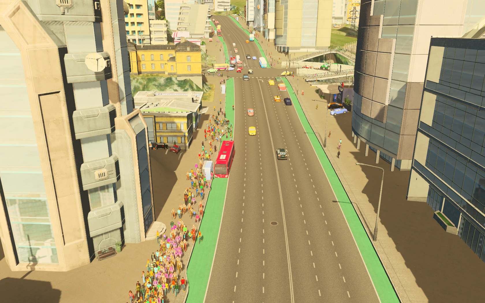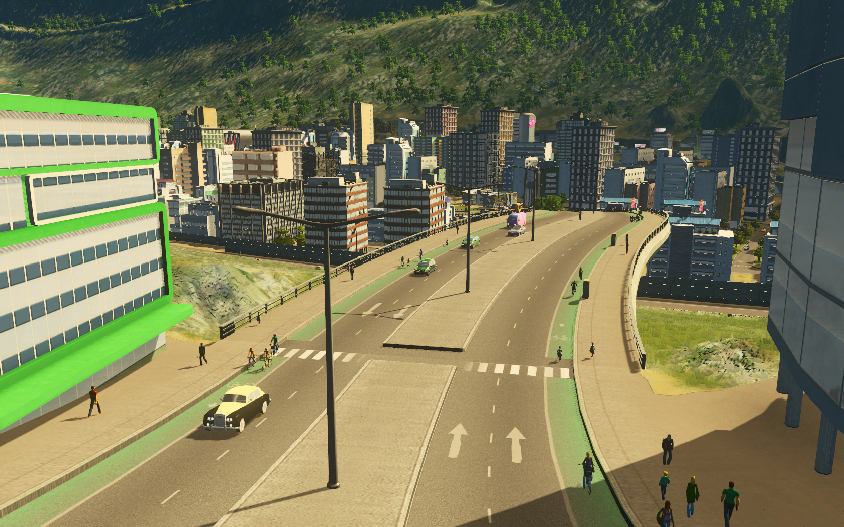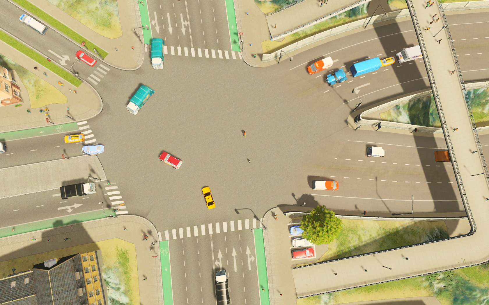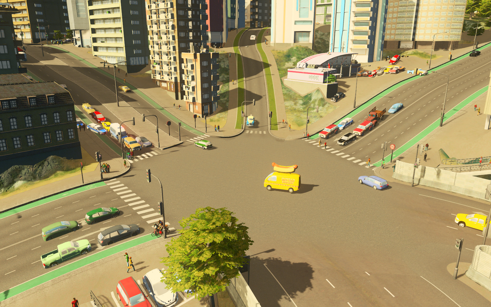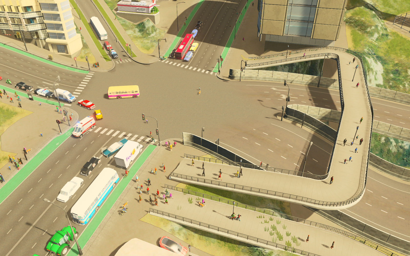 Meine Lieblingskreuzung hat einen Fußgängerüberweg bekommen, damit meine Cims nicht immer über die Autobahn latschen müssen.