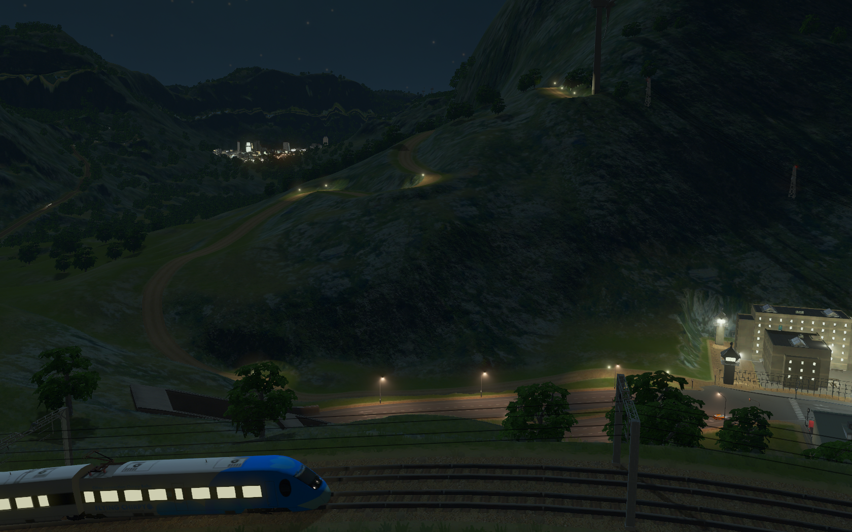 Eine Eisenbahnbrücke die zur Map gehört. Und Züge die leider nicht After-Dark-kompatibel sind.